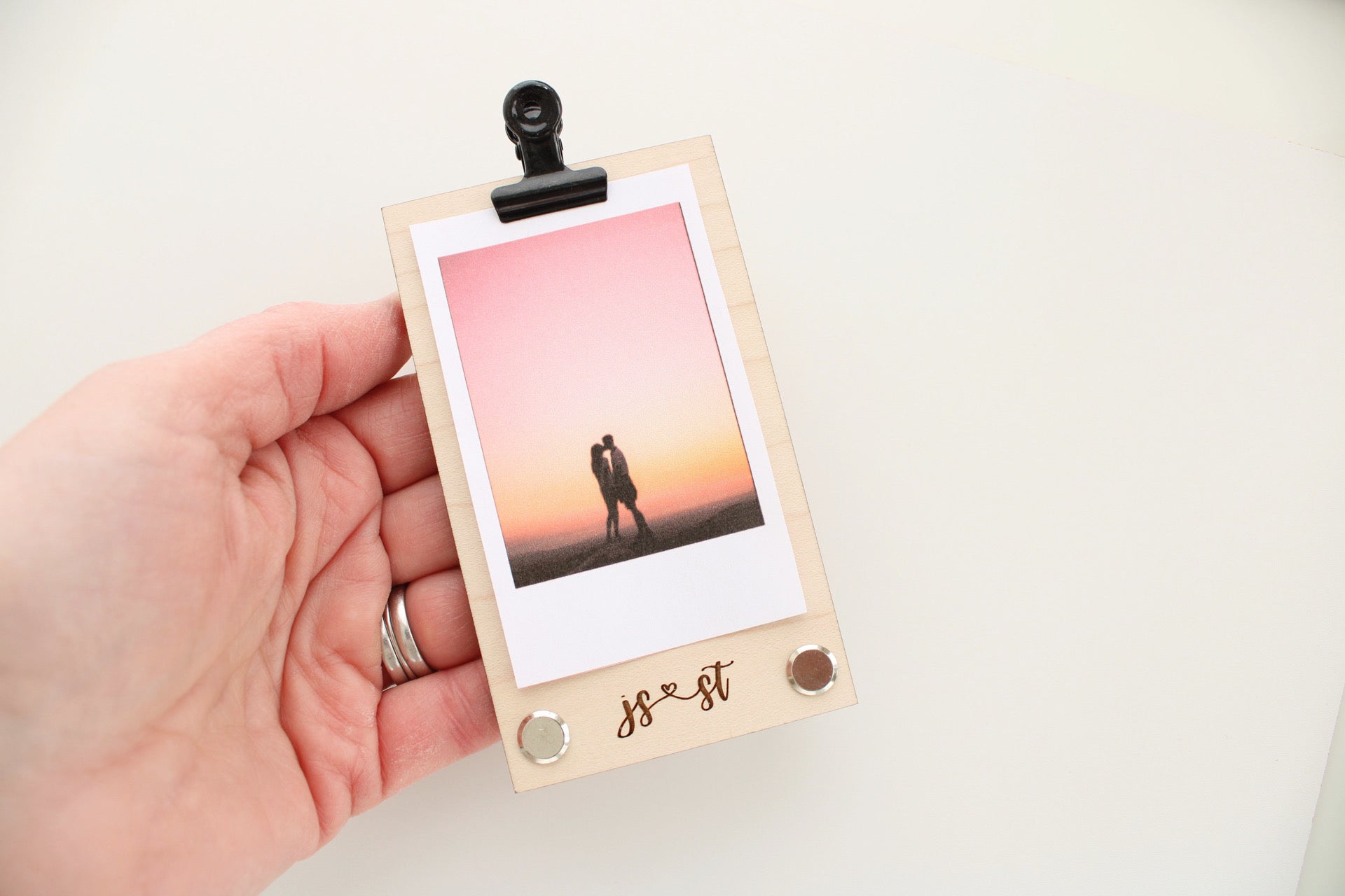 This freestanding wood picture frame is ideal for displaying an Instax mini photograph.